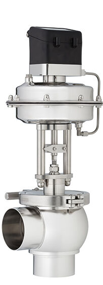 The hygienic right angle valve type 6053 meets high cleanliness requirements and is characterized by excellent cleanability and ease of maintenance at large nominal sizes. The control and on/off valves of the 6053 series are ideal for applications in beverage and food production, cosmetics manufacturing, as well as for the control of ultra-pure water in semiconductor production. Especially dairy processing plants benefit from the optional 3A compliance.